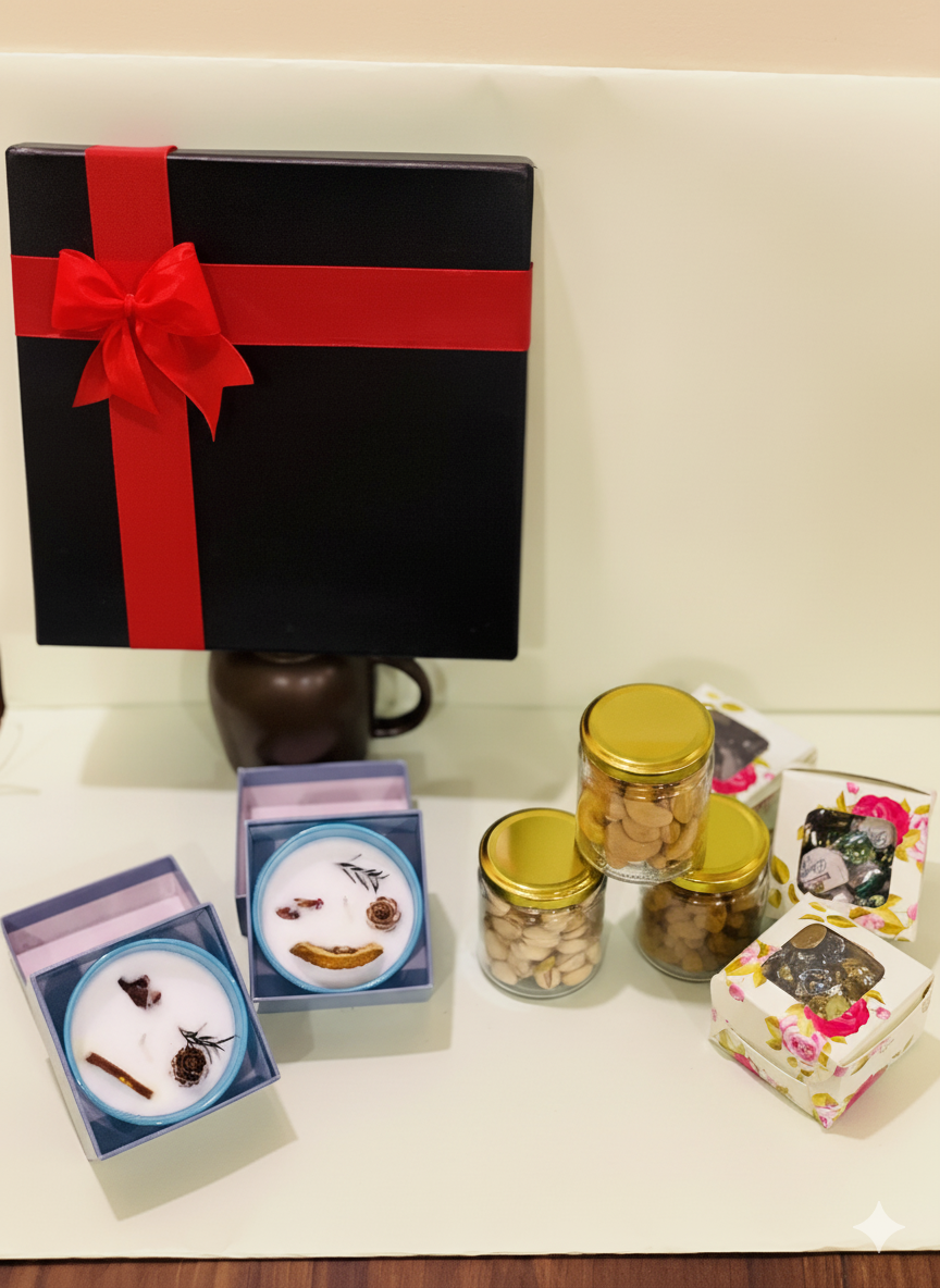 exotic sweets, and aromatic coconut-scented candles, this hamper is designed to leave a lasting impression.