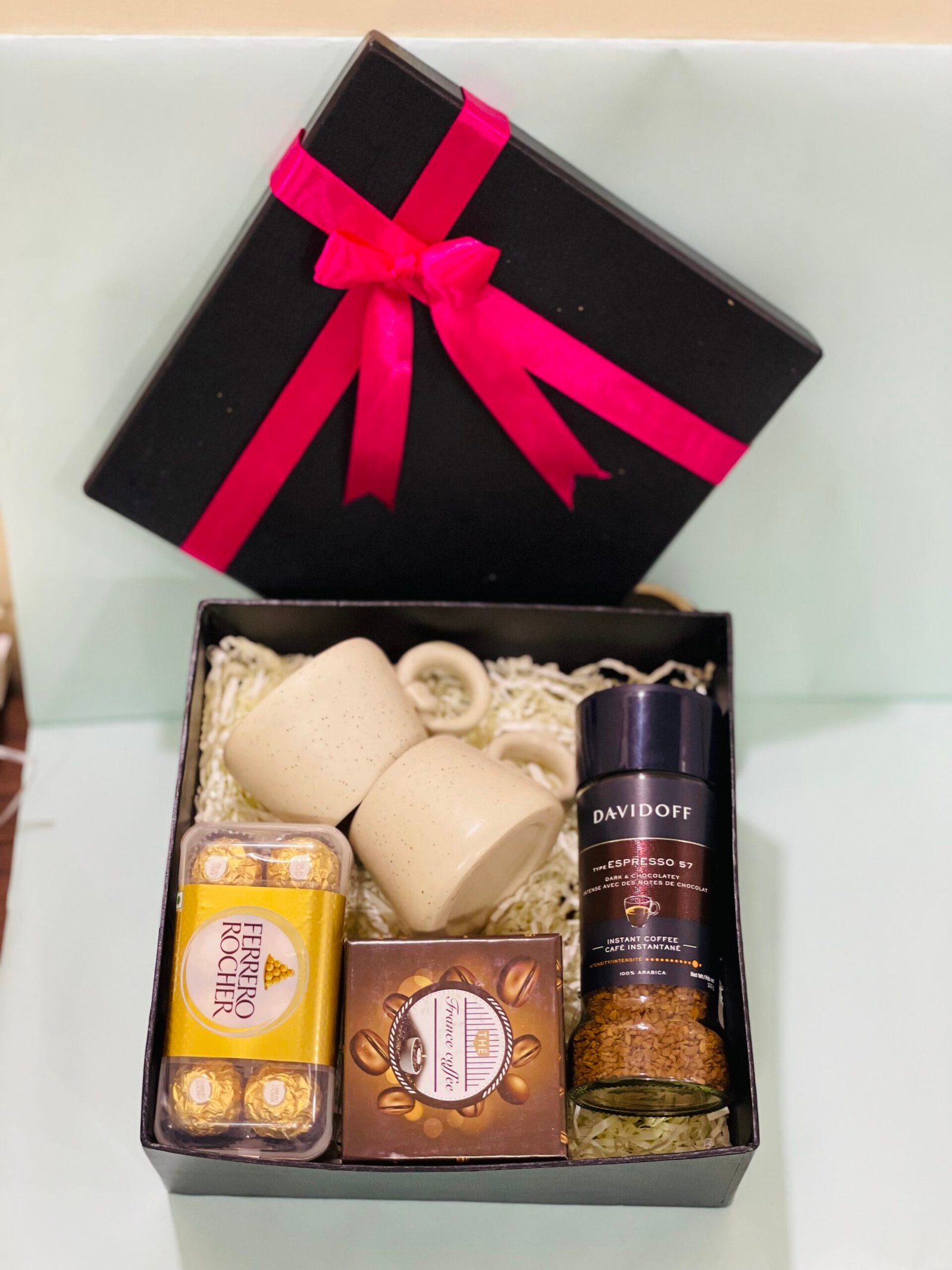 • Includes premium gourmet coffee and Ferrero Rocher chocolates